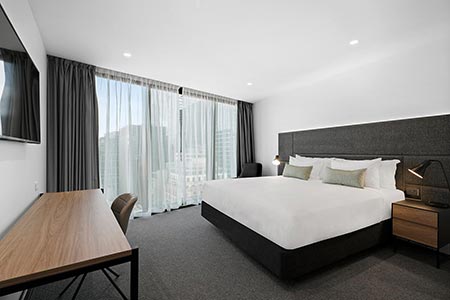 And, after a day of meetings or sightseeing, disconnect with modern hotel conveniences - tasteful décor, a gym and heated indoor pool and floor to ceiling windows that give you a bird’s eye view of the city. Over 200 square metres of modern conferencing space is also available for events of all shapes and sizes.