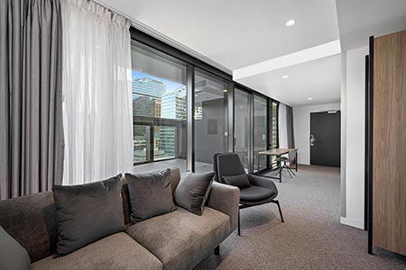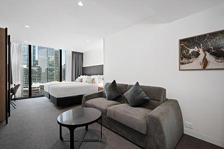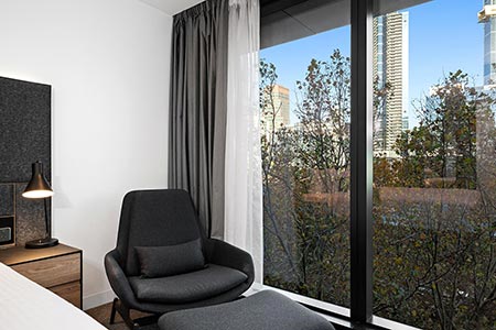 The upper floors are toned down with natural materials and a muted palette. Matt black metal features have been selected for the standard rooms and brass metal highlights for the suite upgrades. Here, in these calming surrounds, you can make the most of the city’s thriving East End Theatre District, which offers six historic theatres, before heading to Melbourne Central for a world-class shopping or dining experience. Or, catch the free tram for a loop around the CBD, walk to enjoy the tennis, the AFL or the latest pop sensation in concert or board a train from Flinders Street to the surrounding districts.